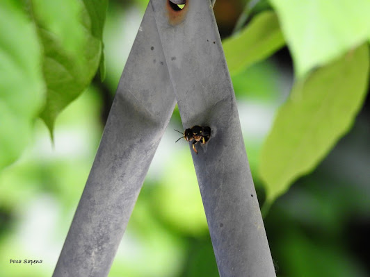 Por cierto, creo que el nido lo tiene en uno de los laterales de mi balancín, ya que a menudo le veía entrar y salir por este agujero